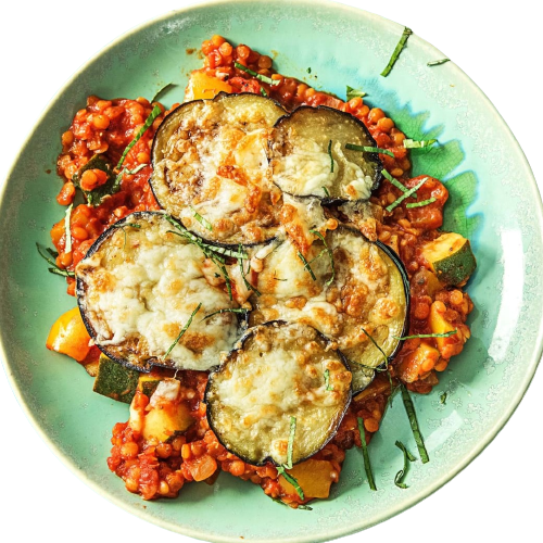 Nekas nespēj līdzināties sildošam lēcu, cukini un paprikas sautējumam, ko papildina siera bagāti baklažāni.