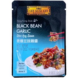 Pagatavošanas ieteikums (2 porcijas): 1. Vok vai parastajā pannā karsē 1 ēd.k. eļļas, pievieno 250g kubiņos sagrieztas vistas filejas un cep uz vidējas uguns 5-7min, līdz gabaliņi zeltaini. 2. Pievieno 1 sagrieztu zaļo papriku, 75g šķēlītēs sagrieztu sēņu un, maisot, cep 3-4min. 3. Pievieno paciņu Melno pupiņu un ķiploku mērces, nedaudz ūdens un, maisot, izkarsē vēl 2min. Pasniedz ar rīsiem.